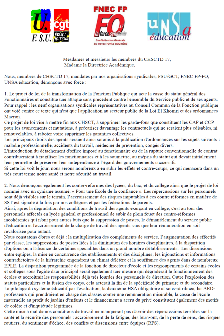 13 avril 201913 avril 2019snfolc17 Déclaration liminaire au CHSCTd du 11 avril 2019 Partager : Partager sur Bluesky(ouvre dans une nouvelle fenêtre) Bluesky Partager sur Facebook(ouvre dans une nouvelle fenêtre) Facebook Partager sur WhatsApp(ouvre dans une nouvelle fenêtre) WhatsApp Partager sur X(ouvre dans une nouvelle fenêtre) X J’aime chargement… Similaire