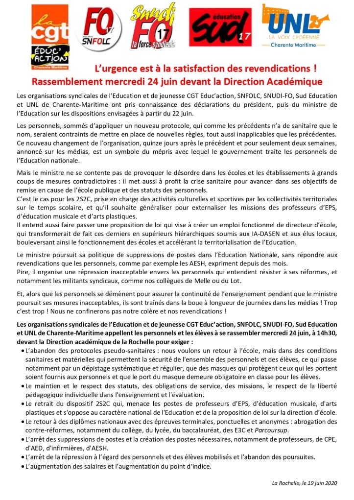 20 juin 202020 juin 2020snfolc17 image Rassemblement mercredi 24 juin à 14h30 pour exiger la satisfaction des revendications ! Partager : Cliquer pour partager sur Bluesky(ouvre dans une nouvelle fenêtre) Bluesky Cliquez pour partager sur Facebook(ouvre dans une nouvelle fenêtre) Facebook Cliquez pour partager sur WhatsApp(ouvre dans une nouvelle fenêtre) WhatsApp Cliquer pour partager sur X(ouvre dans une nouvelle fenêtre) X J’aime chargement… Similaire