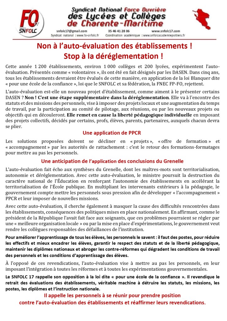 3 Mai 20213 Mai 2021snfolc17 Mobilisons-nous pour refuser l’auto-évaluation des établissements ! Partager : Cliquer pour partager sur Bluesky(ouvre dans une nouvelle fenêtre) Bluesky Cliquez pour partager sur Facebook(ouvre dans une nouvelle fenêtre) Facebook Cliquez pour partager sur WhatsApp(ouvre dans une nouvelle fenêtre) WhatsApp Cliquer pour partager sur X(ouvre dans une nouvelle fenêtre) X J’aime chargement… Similaire