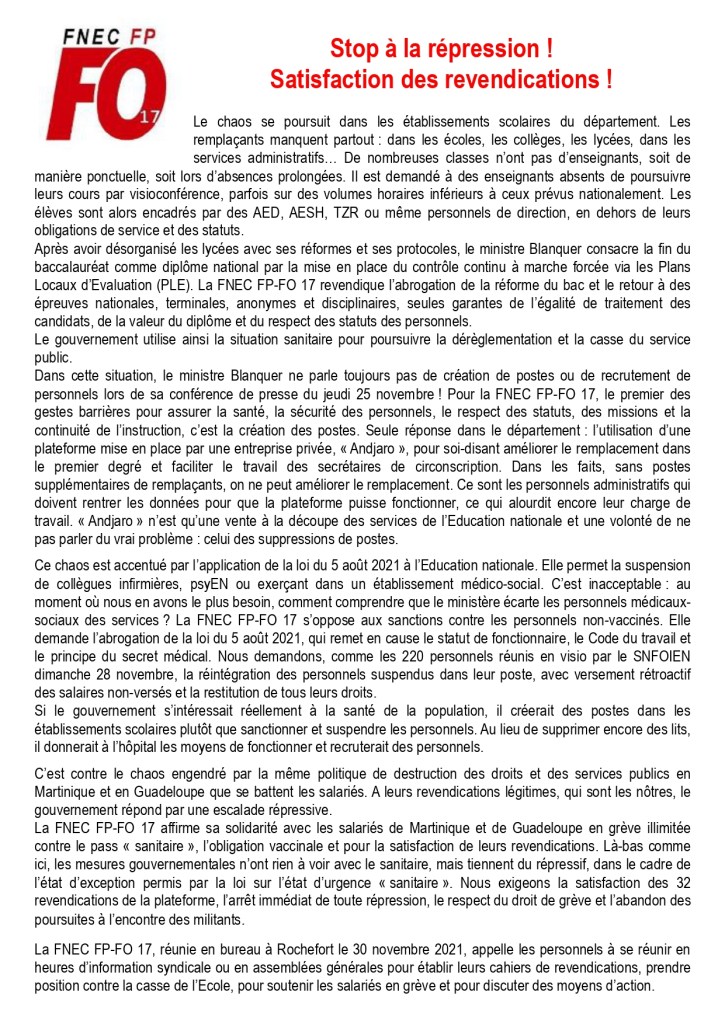 2 décembre 20212 décembre 2021snfolc17 image Stop à la répression ! Satisfaction des revendications ! Partager : Cliquer pour partager sur Bluesky(ouvre dans une nouvelle fenêtre) Bluesky Cliquez pour partager sur Facebook(ouvre dans une nouvelle fenêtre) Facebook Cliquez pour partager sur WhatsApp(ouvre dans une nouvelle fenêtre) WhatsApp Cliquer pour partager sur X(ouvre dans une nouvelle fenêtre) X J’aime chargement… Similaire