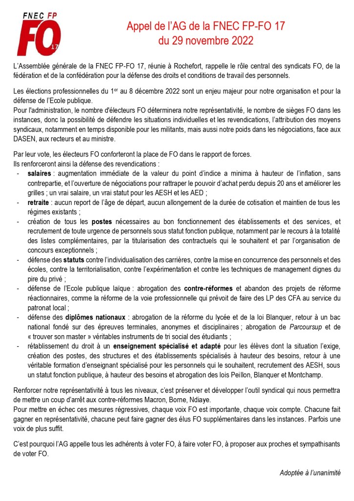 30 novembre 202230 novembre 2022snfolc17 image Dès jeudi 1er décembre : votons et faisons voter FO ! Partager : Cliquer pour partager sur Bluesky(ouvre dans une nouvelle fenêtre) Bluesky Cliquez pour partager sur Facebook(ouvre dans une nouvelle fenêtre) Facebook Cliquez pour partager sur WhatsApp(ouvre dans une nouvelle fenêtre) WhatsApp Cliquer pour partager sur X(ouvre dans une nouvelle fenêtre) X J’aime chargement… Similaire