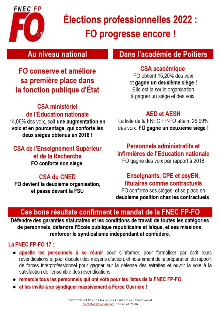 10 décembre 202210 décembre 2022snfolc17 image Nouvelle progression de FO aux élections professionnelles Partager : Cliquer pour partager sur Bluesky(ouvre dans une nouvelle fenêtre) Bluesky Cliquez pour partager sur Facebook(ouvre dans une nouvelle fenêtre) Facebook Cliquez pour partager sur WhatsApp(ouvre dans une nouvelle fenêtre) WhatsApp Cliquer pour partager sur X(ouvre dans une nouvelle fenêtre) X J’aime chargement… Similaire
